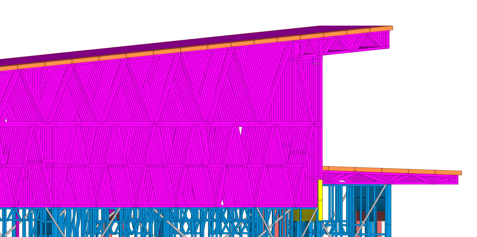 Initially, I had vertical members as studs and horizontal members as noggings. The client suggested a reversal — horizontal members as studs and vertical members as noggings — so that the framing better supported the roof sheeting direction and provided more consistent strength along the overhang.