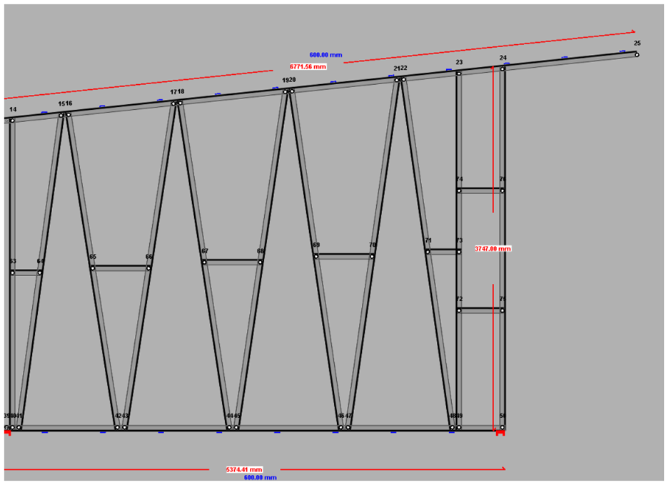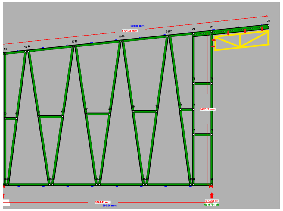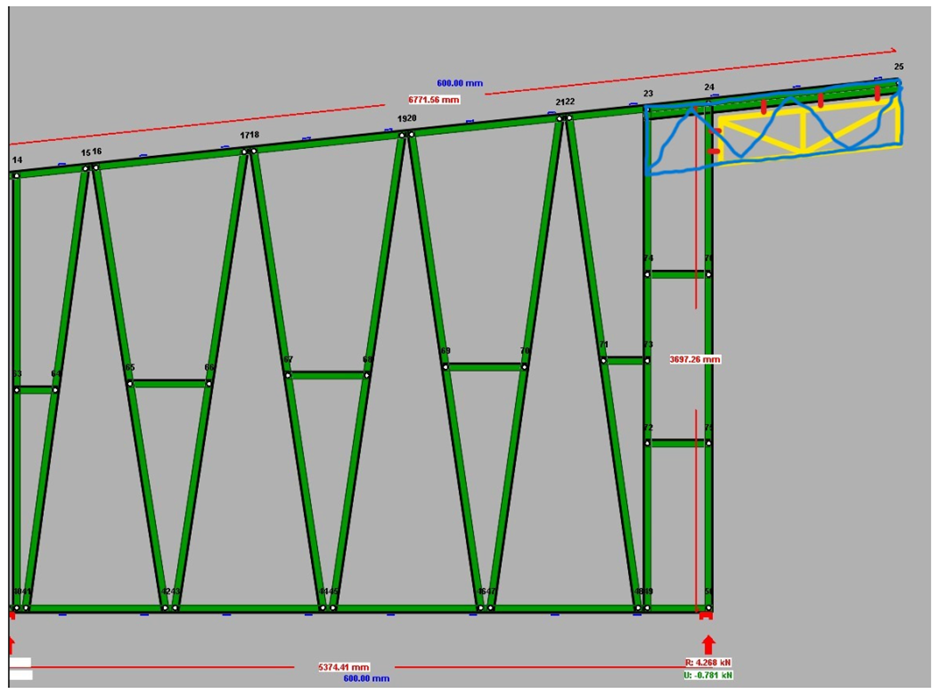 Would it be possible to design the truss as shown in the attached image — with the blue section as a separate truss fixed on-site and the green truss cut to receive it?”