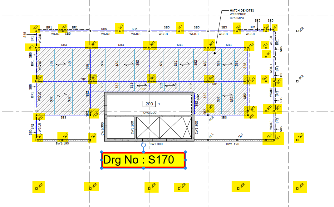 Structural drawings indicate steel columns (SC1,SC2 & SC3) in structural plan, but there is no member profile nomination provided for these columns in the member schedule. Therefore, those steel columns were not included in this takeoff report. Please refer below snap showing yellow highlighted columns. In addition we have attached the highlighted markup for clarity