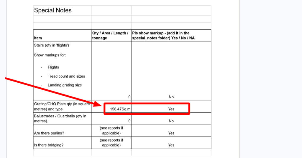 This is 156 square meters of checker plate – which is not cheap. If you leave it like this, the client might miss – so consider highlighting where relevant.