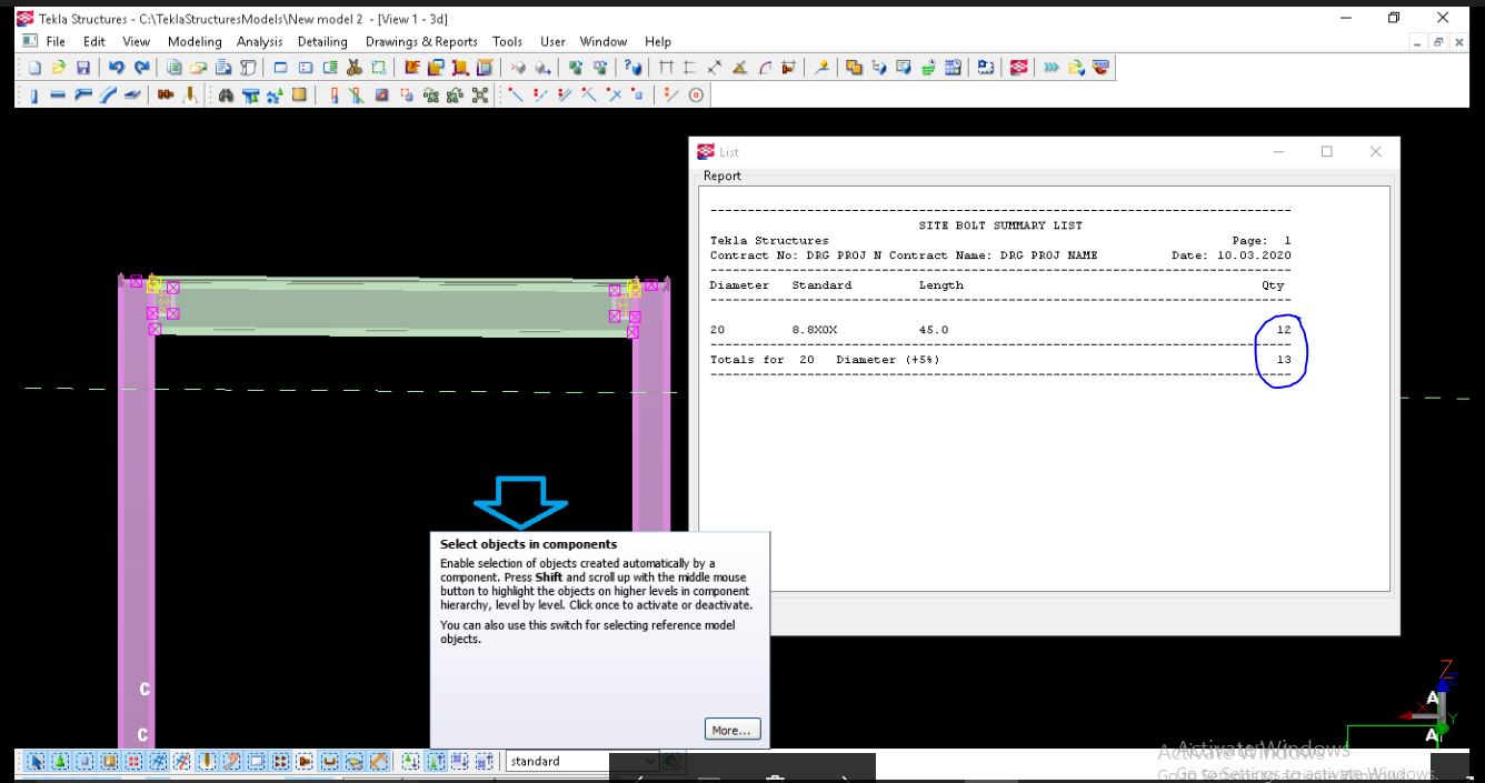 While creating reports in Tekla Always ensure that selection men must be in objects selection. See below snaps